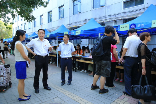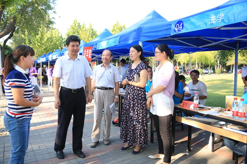 校党委书记史习红、校长葛宝臻、校党委副书记卫克武、副校长刘革生等校领导来到迎新及接站现场,亲切慰问忙碌在迎新第一线的工作人员,向大家表示感谢,并嘱咐他们要热情待人、周到服务。校领导与新生及家长亲切交谈,欢迎他们成为天商大家庭的一员。