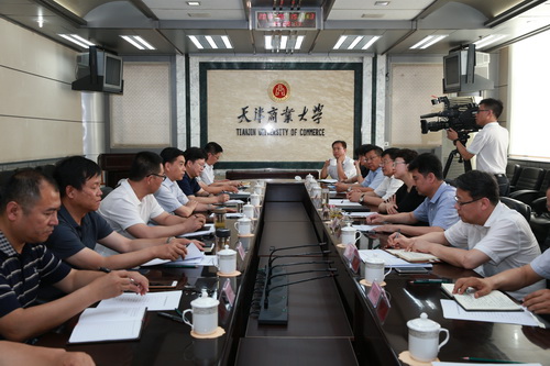 6月15日下午,天津市北辰区委、区政府、区政协领导一行来校走访调研,就进一步加强校区交流合作,谋求校区共同发展召开座谈交流会。校党委书记史习红,北辰区委书记张盛如,校党委副书记、校长葛宝臻出席并讲话。北辰区委常委、常务副区长钟学军,区委常委、区委办主任、开发区管委会主任陈健,副区长刘金刚,区政协副主席陈文慧,副校长邱立成、刘革生、齐恩平等参加。