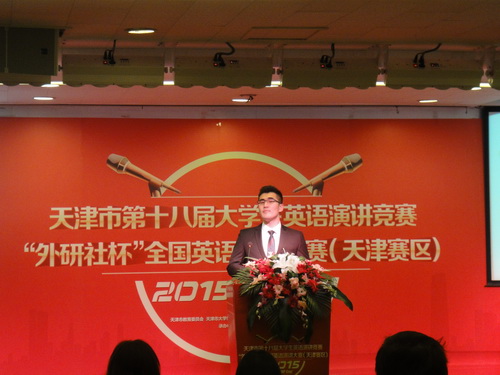 10 月 31 日—11 月1 日,天津市第十八届大学生英语演讲竞赛暨2015 年外研社杯全国英语演讲大赛天津赛区决赛在天津科技大学落下帷幕,来自天津各高校的 27 名选手经过了两天的鏖战,在高手如林、竞争激励的赛场中,永利官网外国语学院陈云鹏同学脱颖而出,以第一名的成绩获得天津市特等奖。此外,永利官网高职与继续教育学院张玉娇同学、 TUC-FIU 合作学院黄何同学获得天津市三等奖,外国语学院辅导员郭文雅获得“组织工作先进个人”,外国语学院获得“组织工作先进单位”。陈云鹏将于12 月前往北京代表天津市大学生参加全国英语演讲大赛决赛。