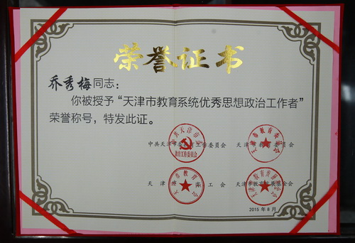 乔秀梅获得“天津市教育系统优秀思想政治工作者”称号