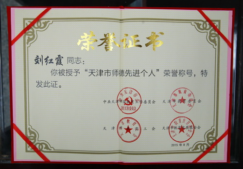 刘红霞获得“天津市师德先进个人”称号