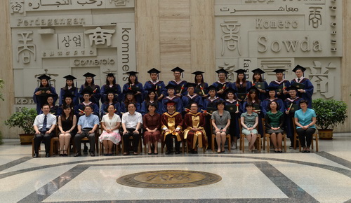 毕业生代表董晨风、杨佳璇分别用中、英文发表了热情洋溢的毕业感言,在体会成功喜悦的同时,庆幸自己在学习生涯中做出了一次正确的选择, 中外教授辛勤授课及严谨细致的工作作风永远值得我们学习。两年来,除了学习了大量的专业知识,更重要的是学到了独立精神、国际视野、自由思想、科学态度、人文情怀,这一点将对今后的发展带来巨大的帮助。