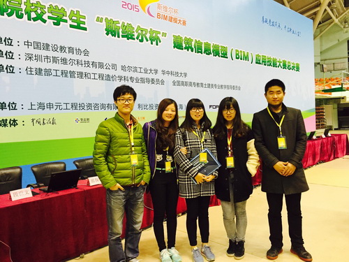 近日,由中国建设教育协会主办,深圳市斯维尔科技有限公司、华中科技大学和哈尔滨工业大学承办,住建部工程管理和工程造价学科专业指导委员会、全国高职高专教育土建类专业教学指导委员会大力支持的第六届全国中、高等院校学生“斯维尔杯”建筑信息模型( BIM )应用技能大赛全国总决赛在华中科技大学和哈尔滨工业大学同步举行。由商学院工程管理专业的周建强、胡蓉蓉、张鑫源、杨智超、周雪五位同学组成的学生团队,在张金娟老师、宋海风老师的指导下,与清华大学等众多名校、以及国家示范高职院校、国家骨干高、中职院校等名校学生同台竞赛,经过层层角逐,最终凭借其卓越的实力,荣获全国全能二等奖一个、专项二等奖四个、专项三等奖三个。这不仅是永利官网在该比赛的一个新的突破,也是本届大赛天津市高校最好成绩。