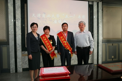 校领导为天津市 “ 五一 ” 劳动奖章获得者张坤生教授、王立争副教授颁奖