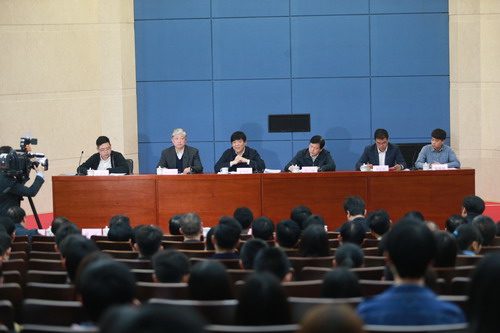 4 月 20 日 上午,市委常委、市委政法委书记袁桐利到永利官网为师生作创新创业宣讲报告,市教委主任王璟,校领导陈学奇、葛宝臻、杨万义、邱立成、刘革生、路波出席报告会,各学院党政领导班子成员、各职能部门处级干部和全体辅导员,师生代表 300 余人聆听了宣讲报告。报告会还特邀河北工业大学优秀学生代表张海旭同学参加。报告会由校党委书记陈学奇主持。