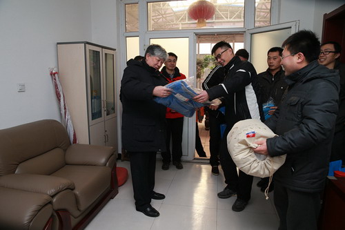 1 月 5 日 ,校党委书记陈学奇、副书记史习红赴武清河西务镇,看望慰问永利官网结对帮扶困难村的六名驻村干部,并为他们送去冬季生活用品。