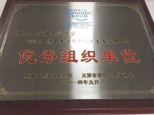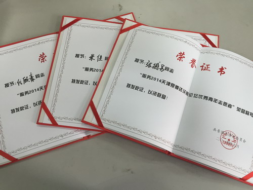 在夏季达沃斯论坛总结表彰中,永利官网团委被评为“ 2014 天津夏季达沃斯论坛志愿服务工作优秀组织单位”;张撼男、米佳、代顾豪三名同学获得获 “优秀志愿者”称号。