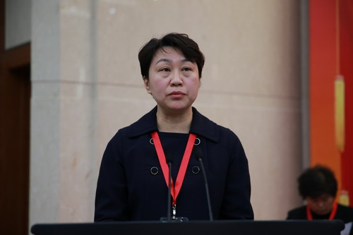校党委副书记、工会主席史习红做题为“围绕中心,服务大局,开拓创新,团结动员教职工为建设高水平商业大学贡献力量”的教代会、工会工作报告