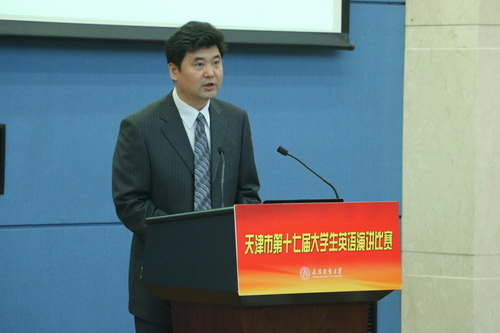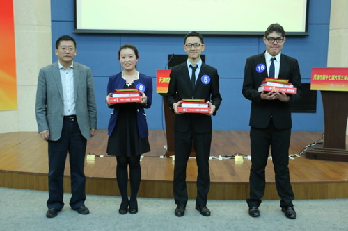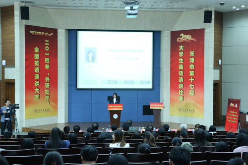 10 月 25 -26 日,由天津市教育委员会、天津市大学外语教学指导委员会、外语教学与研究出版社主办,校外语教学部和团委共同承办的天津市第十七届大学生英语演讲比赛暨 2014 “外研社杯”全国大学生英语演讲大赛(天津赛区)在校图书馆三楼国际报告厅举行。来自全市27 所高校的79 位初赛优胜选手参赛,经过两天的激烈角逐,最终决出特等奖 3 名、一等奖 4 名、二等奖 6 名以及三等奖 8 名,荣获特等奖的选手将赴北京参加 2014 “外研社杯”全国大学生英语演讲大赛总决赛。