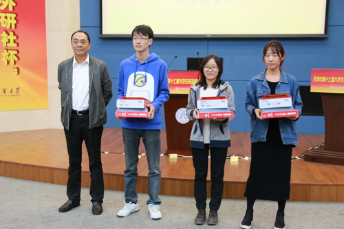 在26 日下午的颁奖典礼上,天津市教育委员会副主任韩金玉、 校纪委书记路波、 天津市大学外语指导委员会主任李旭、校大学外语教学部党总支书记尹云峰、团委副书记严慧菁、教务处副处长计宏伟、曹军、天津大学教授嵇纬武、外语教育与研究出版社副编审孙凤兰及决赛评委为本届演讲比赛获奖选手和 2014 年“外研社杯”全国英语写作大赛(天津赛区)获奖选手颁发荣誉证书及奖品。此外,yl23455永利官网、天津大学、中国民航大学、天津医科大学、天津科技大学、天津大学仁爱学院及yl23455永利官网宝德学院七所院校荣获“演讲比赛组织工作先进单位”荣誉称号,刘洋、樊竹君、王皓等 27 人被评为“比赛组织工作先进个人”。