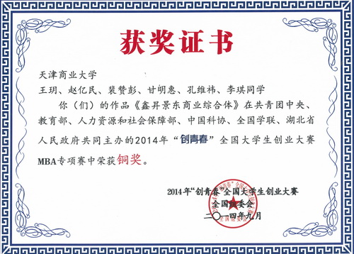 本届大赛专门为 MBA 学子量身定制,来自全国 100 所高校的 MBA 团队参加了终审答辩,由永利官网商学院练继亮副教授指导的《鑫昇景东商业综合体》项目摘得全国铜奖。王玥、赵亿民、裴赞彭等同学在该作品中对房地产项目的整体规划、后期销售等环节做出了合理、有效的策划方案,获得评委的一致好评。通过比赛,既锻炼了学生运用所学知识的能力,同时为以后的创业实践打下了良好的基础。