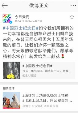 9 月 30 日 是我国首个烈士纪念日。为缅怀烈士功绩,弘扬烈士精神,培养学生的爱国主义、集体主义精神和社会主义道德风尚,培育和践行社会主义核心价值观,激发学生实现中华民族伟大复兴中国梦的强大精神力量,校团委指导各级团组织、学生组织开展了一系列纪念活动。