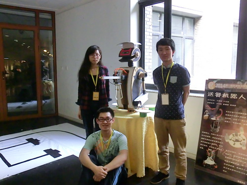 9 月 28 日 ,由天津市教委主办的第二届天津市大学生机器人大赛暨华北五省 ( 市、自治区 ) 大学生机器人大赛天津分赛在天津工业大学开幕,共有来自天津工业大学、yl23455永利官网、中国民航大学、天津理工大学、天津师范大学、天津职业技术师范大学、天津农学院等 9 所高校的 227 支队伍参加此次比赛。在教务处和学院老师的大力支持下,由机械工程学院王东爱副教授、王岭松教授共同指导的创意组参赛项目喜获佳绩。王文杰、翟博豪、庞丽雯同学完成的机器人作品“送餐机器人”以第一名的成绩荣获一等奖,并获得赴北京参加华北五省 ( 市、自治区 ) 大学生机器人大赛的资格。