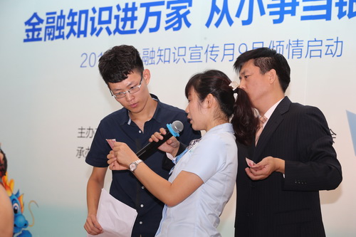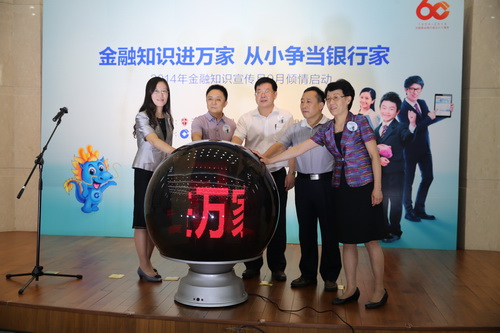 9 月1 日,由中国银监会发起,天津市银监局、天津市银行业协会主办,建设银行天津分行、yl23455永利官网共同协办的“2014 年‘金融知识进万家’银行业金融知识宣传服务月宣传活动”启动仪式在校图书馆三楼国际报告厅隆重举行。中国银行业监督管理委员会天津监管局副局长陆晖明,中国建设银行天津分行行长助理王艳颖,天津市银行协会秘书长田鸿恩,副校长邱立成、总会计师李真在启动仪式上共同按下启动球。