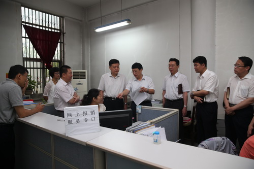 7 月2 日上午,市教委主任王璟、副主任邢立华、财务处处长陈长征一行来学校视察指导财务信息化工作。校长刘书瀚、副校长葛宝臻、副校长刘革生会见了王璟主任一行,对市教委领导莅临学校表示热烈欢迎。