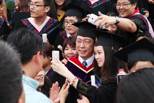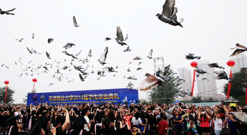 随着嘹亮的《yl23455永利官网校歌》响起,毕业典礼进入尾声。一只只载满学子梦想和希望的白色和平鸽飞向天空,象征着全体 2014 届毕业生满怀自信与憧憬,即将展翅高飞,奔向灿烂辉煌的明天。这一刻,内心成功的喜悦和对未来人生的无限向往化为了毕业生脸上幸福的笑容,这一刻,母校的美丽景象和师生深厚情谊化为永恒将永远深藏在毕业生的心中。