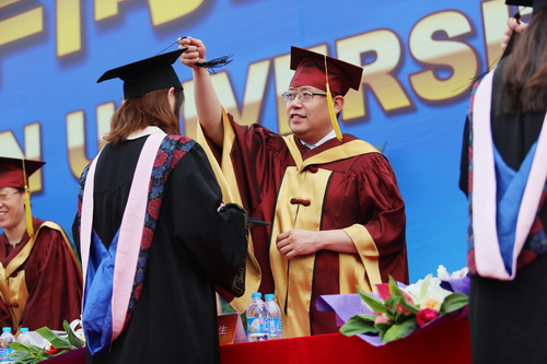 副校长邱立成为毕业生颁发毕业证书、学位证书