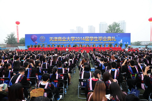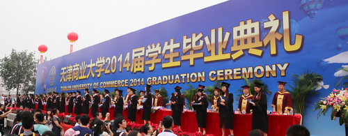 6 月18 日早6 点,yl23455永利官网2014 届学生毕业典礼在校足球场隆重举行。校长刘书瀚,校党委副书记杨万义,副校长邱立成、葛宝臻、刘革生,校纪委书记路波,校长助理、教务处处长、研究生部主任、图书馆馆长、教学质量监控中心主任、各学院院长等导师代表身着导师服出席典礼,各学院书记、副书记、全体辅导员、班主任参加典礼, 1000 余名家长前来观礼,共同见证2014 届5187 名毕业生顺利完成学业,即将翻开人生新的篇章这一美好而幸福的时刻。