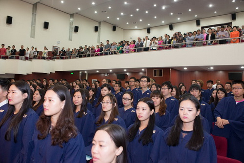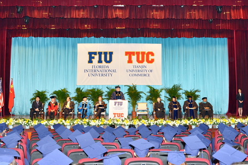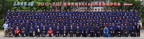 5 月18 日上午, TUC-FIU 合作学院酒店管理专业 2014 届毕业典礼暨 FIU 酒店管理理学学士学位授予仪式在科学会堂举行。天津市人大常委会原副主任、中国外商企业投资协会副会长王述祖先生、yl23455永利官网校长刘书瀚博士、著名企业家Annie Wu 女士、佛罗里达国际大学校董Gerald C. Grant 先生、Claudia Puig 女士、校长Mark B. Rosenberg 博士、FIU 酒店管理学院院长Mike Hampton 博士等出席了典礼并致辞。TUC-FIU 合作学院酒店管理专业的教师和257 名学生以及学生家长参加了典礼。黄捷菲同学代表全体毕业生在庆典上发言。