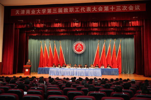 大会听取了校长刘书瀚所作的题为《改革引领,开拓创新,建设高水平商业大学》的工作报告,报告从教育教学质量全面提升,学科建设水平不断提高,国际交流合作稳步推进,学生教育和管理水平得到提升,和谐校园建设扎实开展,深入开展党的群众路线教育实践活动六个方面对学校 2013 年度工作进行了总结。