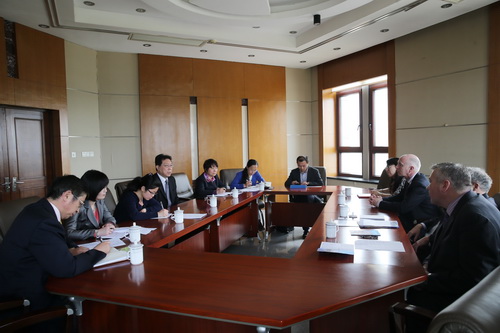 4 月14 日上午,校长刘书瀚在图书馆第三会议室会见了英国利物浦约瀚摩尔斯大学 Nigel Weatherill 校长等一行四人,双方就特色课程互换、互派学生长短期学习交流、进一步拓宽合作渠道等相关事宜进行了友好会谈,并达成共识。国际交流处处长张金霞,副处长王玉婧,国际教育学院直属党支部书记乔秀梅,外国语学院副院长王永祥,法学院党委副书记柴桐等陪同会见会谈。