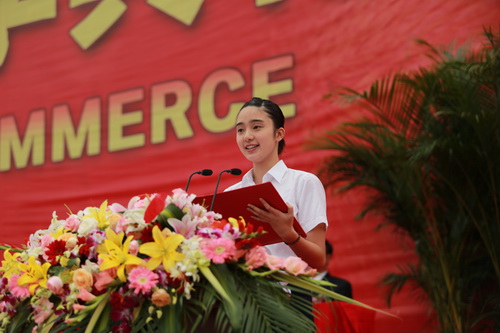 2013级酒店管理(中美合作)专业新生周雯代表全体新生发言