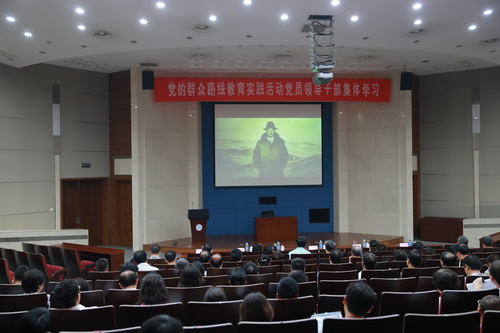 8 月28 日下午,学校教育实践活动领导小组组织党员领导干部集体观看专题片《领导干部坚持群众路线的典范——焦裕禄、孔繁森等领导干部的优秀代表是怎样为民务实清廉的》,校领导刘书瀚、杨万义、史习红、邱立成、路波与全校处级党员干部一起进行了观看。