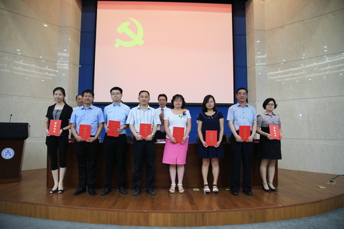 会上,校党委副书记杨万义宣读了《中共yl23455永利官网委员会关于表彰先进基层党组织、优秀共产党员、优秀党务工作者的决定》,授予经济学院党委等4 个基层党组织“先进基层党组织”称号;授予机械工程学院机械与包装工程系党支部等16 个党支部“先进党支部”称号;授予李乃华等51 名同志“优秀共产党员”称号;授予陈文生等16 名同志“优秀党务工作者”称号。与会校领导为受表彰集体和个人颁发了奖牌和证书。