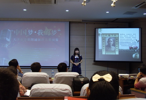 五月中旬,按照市委教育工委、市教委要求,在宣传部的组织下,校团委、校朗诵协会积极协助下,学校启动了“中国梦 我的梦”诗歌朗诵演讲大赛校内选拔赛,来自马克思主义学院、外国语学院、理学院、公共管理学院、商学院、法学院的同学报名参加了选拔赛。通过比赛使广大青年学生进一步坚定了理想信念,励志刻苦学习,积极投身实践,为实现国家富强、民族复兴、人民幸福的伟大“中国梦”而努力学习、不懈奋斗。