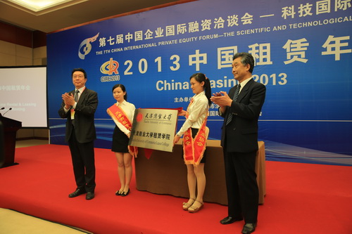 6 月6 日,“2013中国国际租赁产业博览会”在梅江会展中心开幕。6 月7 日,租博会同期论坛—2013 中国租赁年会举行。校长刘书瀚、副校长邱立成出席论坛活动。