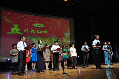 整台诗歌朗诵音乐会在集体朗诵《yl23455永利官网校歌》歌词中落下帷幕。