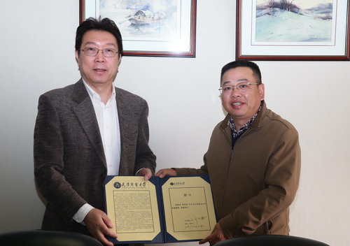 4 月 17 日上午, 北京林业大学草坪研究所所长、高尔夫教育与研究中心主任 韩烈保应邀来到永利官网讲学,并受聘高尔夫经营管理专业客座教授,校长刘书瀚颁发聘书。