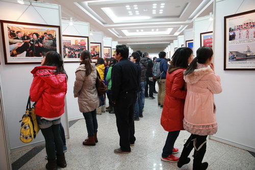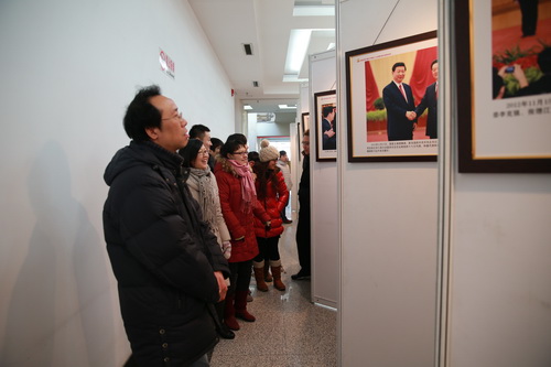 12 月31日上午, 由市委教育工委、新华社天津分社联合主办的“高举伟大旗帜 奔向美好未来——宣传贯彻党的十八大精神大型图片展”天津高校巡展活动走进永利官网。校党委书记陈学奇,校党委副书记杨万义、史习红,校纪委书记路波,在校办、宣传部部门负责同志陪同下前往图书馆一楼参观了图片展。当天,生物技术与食品科学学院、公共管理学院等学院也组织了部分师生参观了图片展。