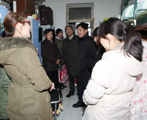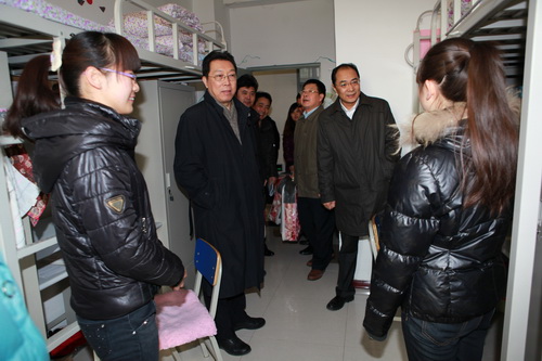 走访慰问中,校党委书记陈学奇详细询问了同学们的在校学习、生活和家庭情况,听取了广大同学在学习、生活服务方面的意见和建议,特别对少数民族同学的学习、生活情况做了全面了解,对学校清真食堂建设作出了明确指示。走访中仔细查看了学生公寓的供热情况和宿舍内实际温度。要求学生公寓会同有关部门通力合作,消除公寓内部各种安全隐患,确保学生安全、温暖过冬。