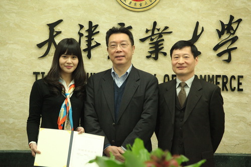 首先,上海校友理事会会长李佳宣布经济学院唐文竹同学和信息工程学院白宇同学获得第二届上海校友理事会优秀毕业生奖学金,曹国宝理事长和李佳会长分别为获奖同学颁发荣誉证书和奖金。
