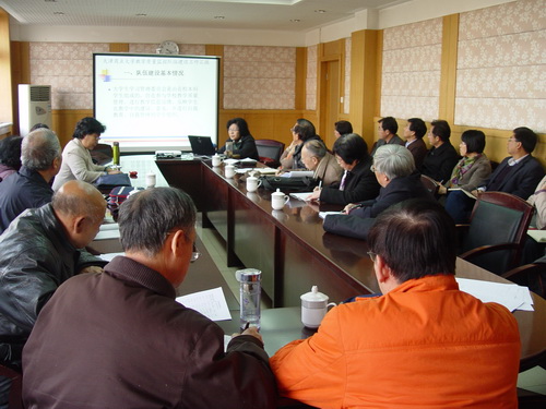 学校教学督导委员会组长李芸教授对学校教学督导队伍建设情况向专家组进行了汇报。