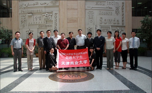 今年9 月,2012 年夏季达沃斯论坛将在我市举办,为了进一步宣传达沃斯论坛,深化大学生对达沃斯论坛的理解,校团委、经济学院与人民网天津视窗共同举办了“2012 天津夏季达沃斯论坛走进大学生”活动。6月14日下午,天津夏季达沃斯论坛筹备办公室处长张竣、处长马特,人民网天津视窗技术总监赵金波,南开大学经济研究中心周云波教授、郭树龙博士,校团委副书记严慧菁,经济学院教师、模拟论坛指导教师贾献东出席了本次活动。人民网天津视窗对活动进行了现场报道。