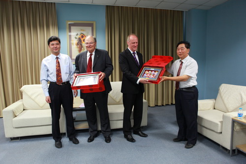 6月8日,副校长马三津和副校长葛宝臻率国际教育学院书记乔秀梅、院长田海龙和副院长齐萱在图书馆贵宾厅会见了澳大利亚查理斯特大学校长 Lawrence Willett 一行。