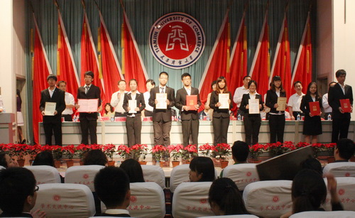 大会在雄壮的国歌声中开始,校团委书记王雷宣读表彰决定综述,他高度评价了永利官网团员、团干部及各级团组织在过去一年里的学习、工作表现,感谢他们为永利官网共青团工作所做的贡献,并介绍了永利官网团员青年在国家、天津市及永利官网各类评选及比赛中取得的优异成绩, 505 名优秀团员、 258 名优秀团干部、 48 个优秀团支部受到表彰,受到表彰的先进个人和集体代表依次上台领奖。
