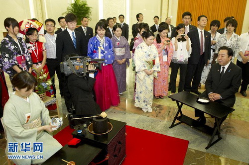 二年级留学生中野麻衣为温家宝总理表演了日本茶道