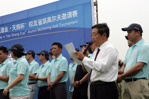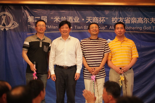 5 月 11 日 ,第二届“米兰酒业·天商杯”校友省亲高尔夫邀请赛在天津松江团泊湖高尔夫球会成功举办。赛事的主题是:“ 重温学子岁月 感恩母校情怀 体验高球魅力 见证天商发展 ”。yl23455永利官网的省亲校友以及高尔夫业界精英共计 50 余人参加了该项赛事。 开球仪式由副校长马三津主持,校长刘书瀚、校友代表段璞致词,学生代表马力君发言。 天津高协副秘书长、天津国际温泉高尔夫俱乐部总经理贯巨和、校长刘书瀚共同为此次邀请赛开球。校党委书记陈学奇、校长刘书瀚出席颁奖晚宴并为获奖者颁奖。