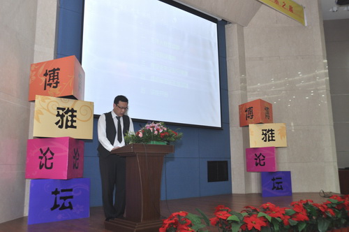 开幕式上,艺术学院党总支书记张建东致开幕辞,代表艺术学院师生对各级领导的大力支持表示衷心的感谢,举办“博雅论坛”一是有利于提升永利官网学生综合素质,为培养复合型人才发挥积极作用;二是有利于提升我院党员教师服务能力,我们的主讲教师都是党员,他们发挥学科专业优势,为师生奉上精彩的艺术讲座,正是他们为师生服务,创先争优活跃基层,推动载体建设的具体体现,同时为提升我院党组织活力做出努力;三是有利于提升永利官网文化生活品味,繁荣校园文化,为增强永利官网内涵建设做出贡献。