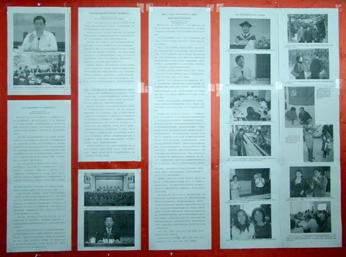为了展示信息工程学院注重党外人士队伍建设所作的工作,宣传栏还刊出了学院近年来与此相关的照片十二幅,这些照片包括:2009年5月27日,学院召开民主党派座谈会,出席座谈会的王瑞忠(民进成员)、王光艳(民盟成员)、张志宇(民建成员)等,畅所欲言,积极建言献策共谋学院发展大计的照片;主持工作的副院长潘旭华教授(无党派人士)在全院大会上连续第四年提出“两个做强”工作重点的讲话的照片;2011年5月14日,学院党委组织狼牙山红色之旅党日活动,受邀参加的陈刚(民进成员)与刚刚讲完党课的正处级调研员马福忠就党的发展历史展开热烈讨论的照片;2011年7月8日,天津市高校系统校务公开检查评估组来永利官网调研检查工作,期间到信息工程学院实地调研检查二级单位院务公开工作,并对学院教代会制度、民主管理、民主监督等工作高度肯定的照片;以及2008年以来,学院几任新老领导班子成员与学院各位民主党派人士在学院各项活动中和谐共处亲切交谈的照片。