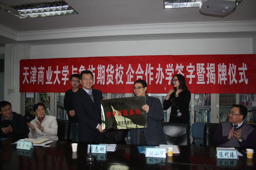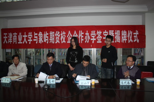12月29 日上午,经济学院与象屿期货责任有限公司校企合作签约暨揭牌仪式在经济学院三楼会议室举行。这是经济学院金融学专业继与中诚信集团、光大期货、中国人民银行天津分行、和融期货和联合信用公司开展紧密型校企合作、银校合作之后,进一步利用社会资源推进专业建设的又一举措。经济学院院长刘小军与象屿期货公司总经理周志刚出席签字仪式并致辞,经济学院副院长王常柏、金融系主任刘红霞、象屿期货天津营业部刘元军经理、金融系全体教师和部分学生代表参加了会议,金融系主任刘红霞主持了签约仪式。