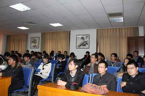 副总监钟文辉首先向大家详细阐述了中指研究院的研究背景、研究方向、研究成果。 同时,钟文辉先生围绕“如何用数据和指标分析问题”,“同学们现在学习的专业知识如何在实际工作中发挥作用”,“中国房地产发展的前世今生以及未来趋势是什么”,“政府的政策走向将会如何”等一系列专业性问题详细为同学们进行讲解。最后,在互动阶段, 同学们积极踊跃,提出“大学生在研究类工作中应该具备哪些素质”,“大学毕业生在公司具体能做哪些工作”等一系列关心的问题,钟先生都一一作答, 与同学们针对土地资源管理专业的就业问题进行了面对面的交流。并表达了与公共管理学院建立战略合作关系和实习基地的意愿。