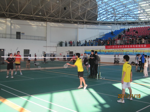 由天津市教育委员会和天津市体育局联合主办的“2011 年天津市大学生羽毛球锦标赛”于11月19 日上午在永利官网风雨操场隆重举行。此次锦标赛为期两天,本市各高校的大学生羽毛球爱好者汇聚一堂,切磋交流。永利官网作为承办单位,在赛前做了大量准备工作,在比赛期间积极为锦标赛做好各项服务保障和安全保障工作,确保了此次大赛在永利官网的顺利举行。锦标赛于11月20 日下午圆满闭幕并得到了主办方、参赛院校和参赛学生们的一致认可与好评。