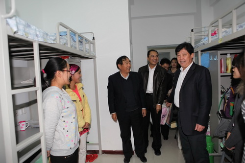 11月9 日、10日下午,校党委书记陈学奇、校长刘书瀚分别在副校长马三津、校纪委书记路波及相关部门负责人的陪同下,到学生公寓慰问家庭经济困难学生 。