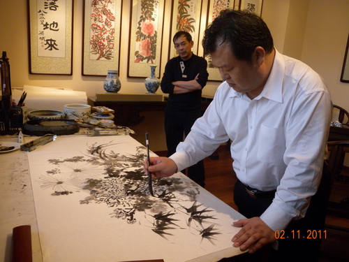 天津市委常委政法委书记散襄军、艺术学院院长王其华与邓作列先生现场笔绘合作
