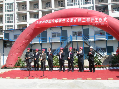 校党委书记陈学奇、校长刘书瀚、副校长马三津、纪委书记路波及天津一建工程有限公司总经理王强、天津天乐国际工程咨询设计有限公司总经理于明全,天津现代监理公司总经理马明,中国建设银行天津红桥支行副行长杨子先等出席开工仪式。刘书瀚校长在开工仪式上致辞。