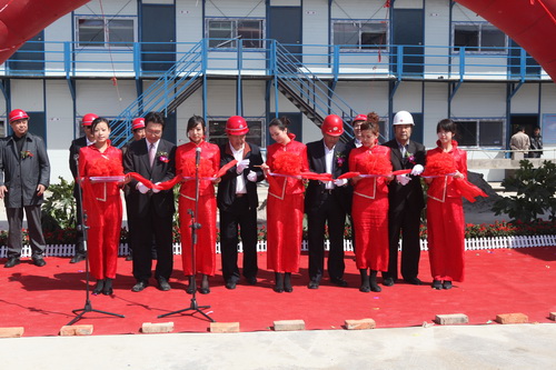 校党委书记陈学奇、校长刘书瀚、王强总经理、马明总经理为开工仪式剪彩